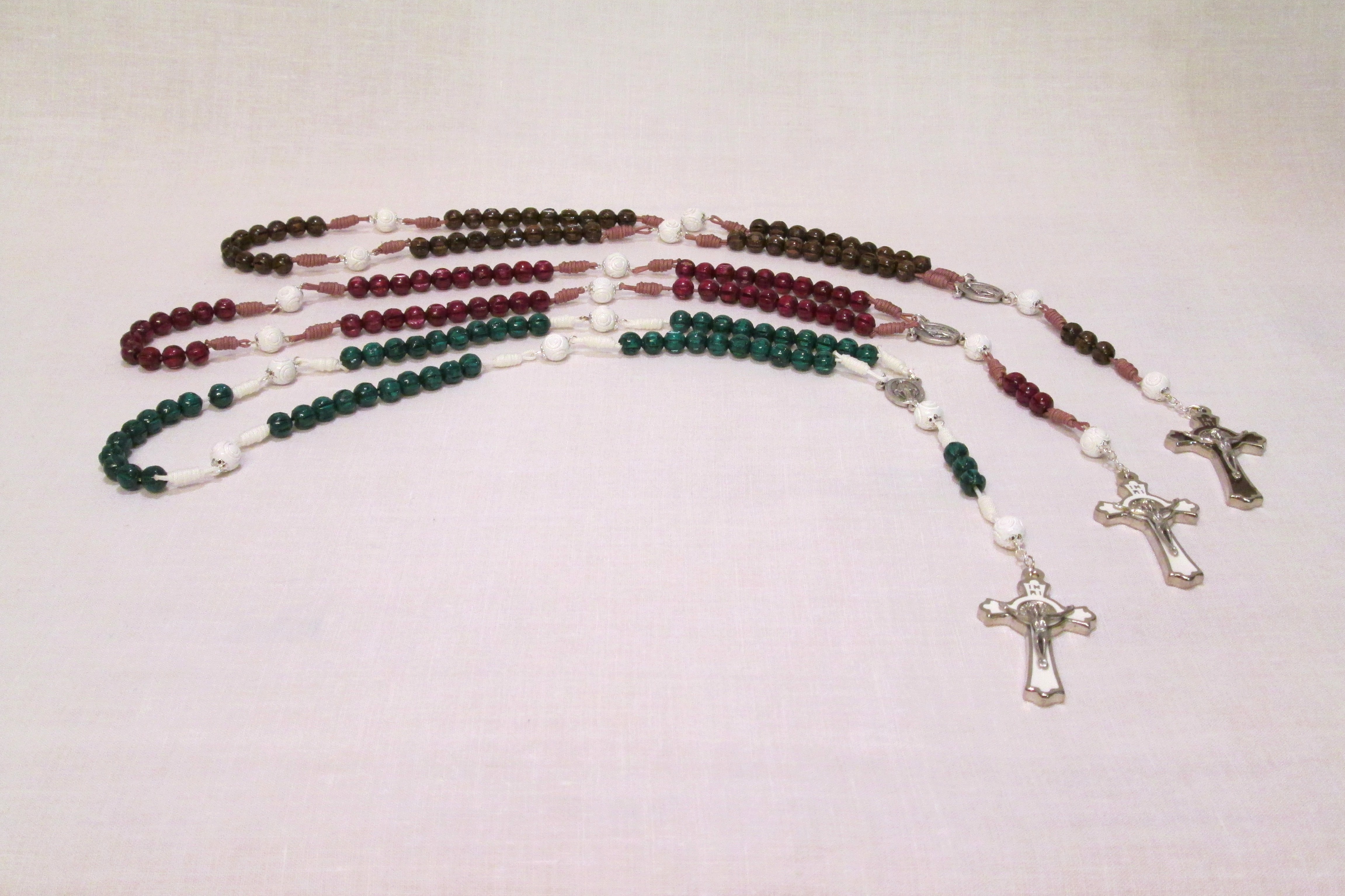 Nachfolgend finden Sie eine kleine Auswahl meiner Rosenkränze. Gerne können Sie diese bei mir auch direkte begutachten oder sich von mir einen individuellen Rosenkranz erstellen lassen.
