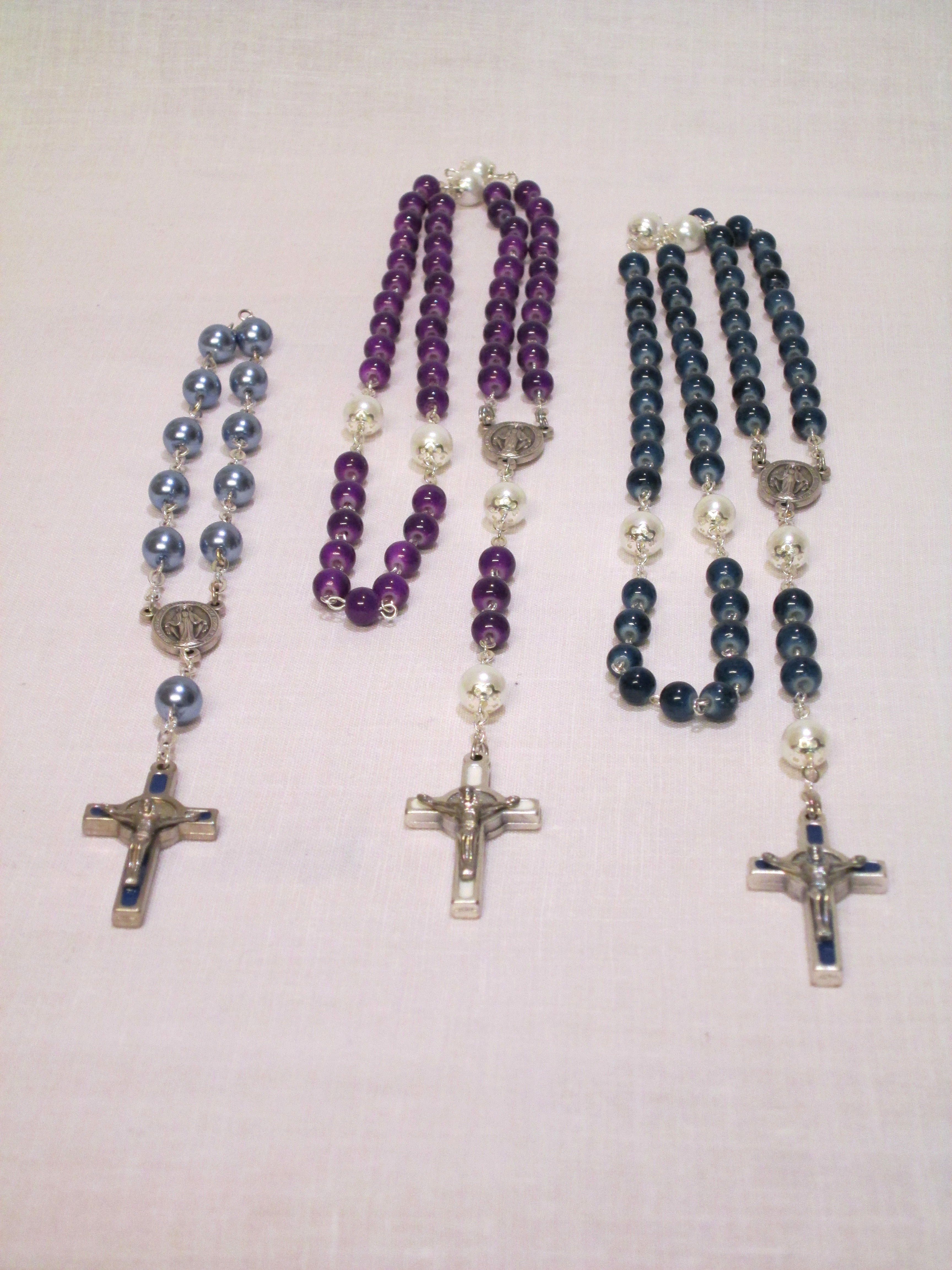 Nachfolgend finden Sie eine kleine Auswahl meiner Rosenkränze. Gerne können Sie diese bei mir auch direkte begutachten oder sich von mir einen individuellen Rosenkranz erstellen lassen.