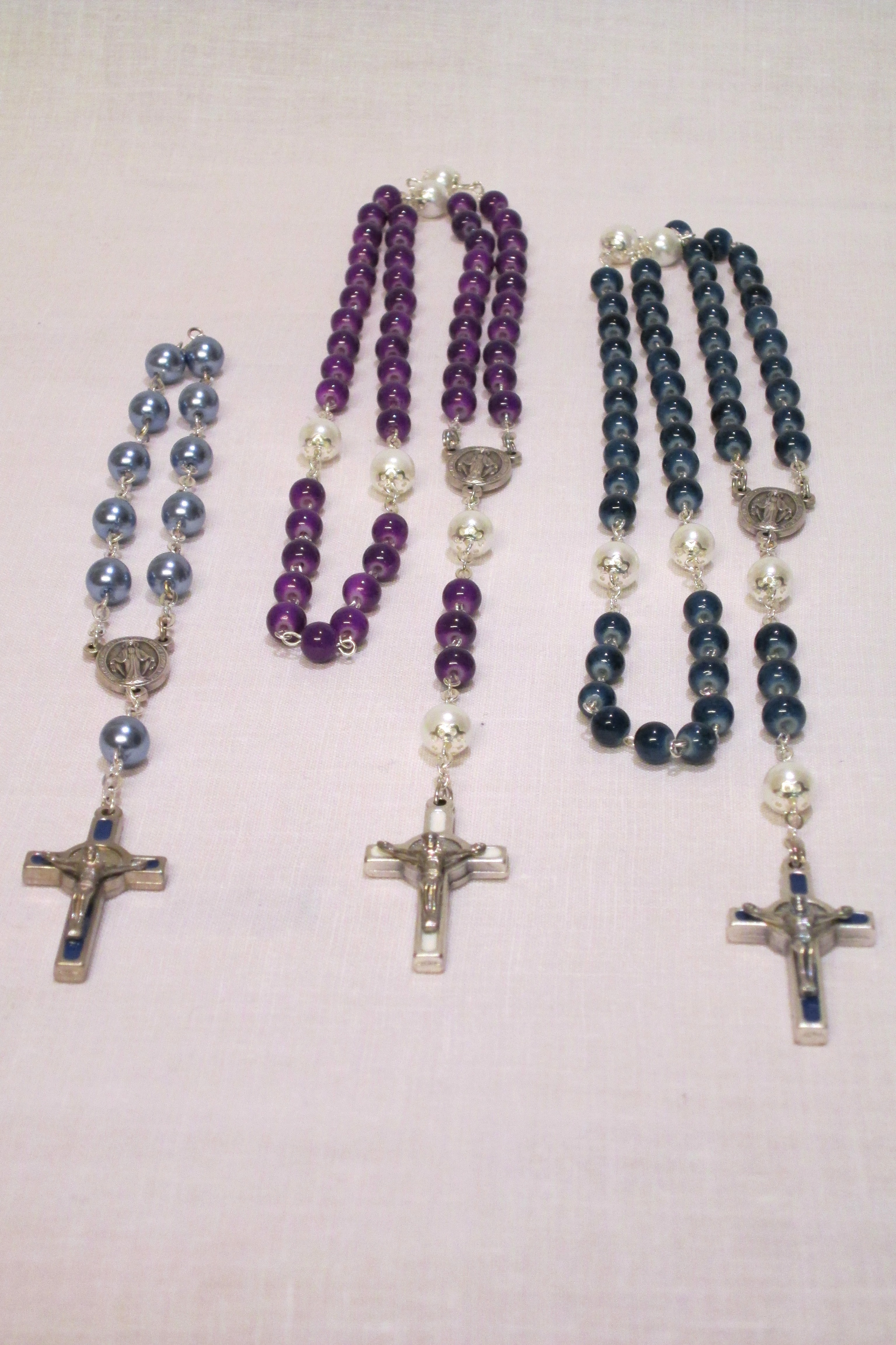 Nachfolgend finden Sie eine kleine Auswahl meiner Rosenkränze. Gerne können Sie diese bei mir auch direkte begutachten oder sich von mir einen individuellen Rosenkranz erstellen lassen.